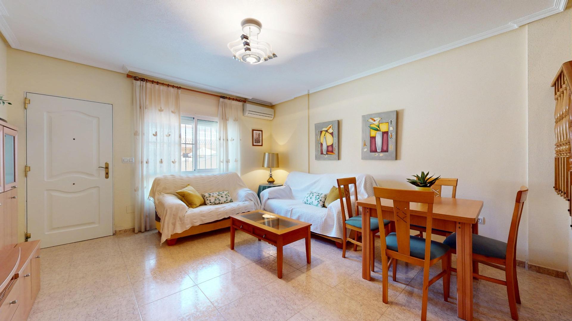 ¿Necesitas HIPOTECA? Hemos ayudado a muchos clientes a conseguir la financiación de su vivienda con unas condiciones excepcionales.~Si la hipoteca es para ti un inconveniente, no dudes en contactarnos, ¡podemos ayudarte!~~¿Buscas una vivienda amplia, cómoda y en una excelente ubicación? Esta casa tipo dúplex se encuentra muy cerca del Jardín Botánico y del Parque Regional de La Salinas es ideal tanto como residencia habitual como para disfrutar de las vacaciones, ya que se encuentra a unos minutos en coche de las playas de San Pedro del Pinatar ~~Te presentamos una vivienda distribuida en dos plantas, cuenta con un gran porche en la entrada, ideal para disfrutar al aire libre y donde también podrás aparcar el coche cómodamente. En la planta baja encontramos un gran salón comedor muy luminoso, un dormitorio de matrimonio con armario empotrado, en planta que aporta gran funcionalidad, un baño completo y una cocina independiente con una pequeña despensa, completamente equipada con todos los electrodomésticos y con acceso directo a un gran patio trasero. Este espacio exterior es perfecto para disfrutar de las tardes de verano, reuniones con amigos o cenas al aire libre.~~En la planta superior, la casa ofrece una zona de distribución muy espaciosa, dos dormitorios amplios, uno de ellos de matrimonio con armario empotrado y salida a una terraza exterior con vistas, mientras que el otro tienes dos camas con armario empotrado y salida también a una terraza privada. Esta planta también dispone de un gran baño con ventana al exterior, que aporta luz natural y ventilación.~La vivienda se encuentra en perfecto estado, se entrega con muebles y tiene Aire Acondicionado y rejas en toda la casa ~. ~No paga gastos de comunidad y se encuentra muy bien comunicada con todos los servicios. Y a un paso de las playas que ofrece San Pedro del Pinatar ~Una vivienda que lo tiene todo: amplitud, luz, exteriores, zonas privadas para disfrutar de nuestro buen clima y una ubicación privilegiada cerca del Parque Regional de las Salinas~~¡No dejes pasar esta oportunidad! Contáctanos para más información o concertar una visita.~PUNTOS A DESTACAR ~*Vivienda familiar amplia y cómoda, preparada para entrar a vivir ~*Dormitorio de matrimonio en planta baja ~*Ubicación tranquila, a unos minutos de todos los servicios y de las playas ~*Casa unifamiliar sin gastos de comunidad *~*Zona de Jardín donde puedes aparcar el coche ~*Patio trasero con gran espacio para disfrutar en familia~~Superficie construida registral: 99,58 m2~Mobiliario incluido: Consultar~Gastos notaría, registro y gestión no incluidos~*NO COBRAMOS AL COMPRADOR*~ ~~~