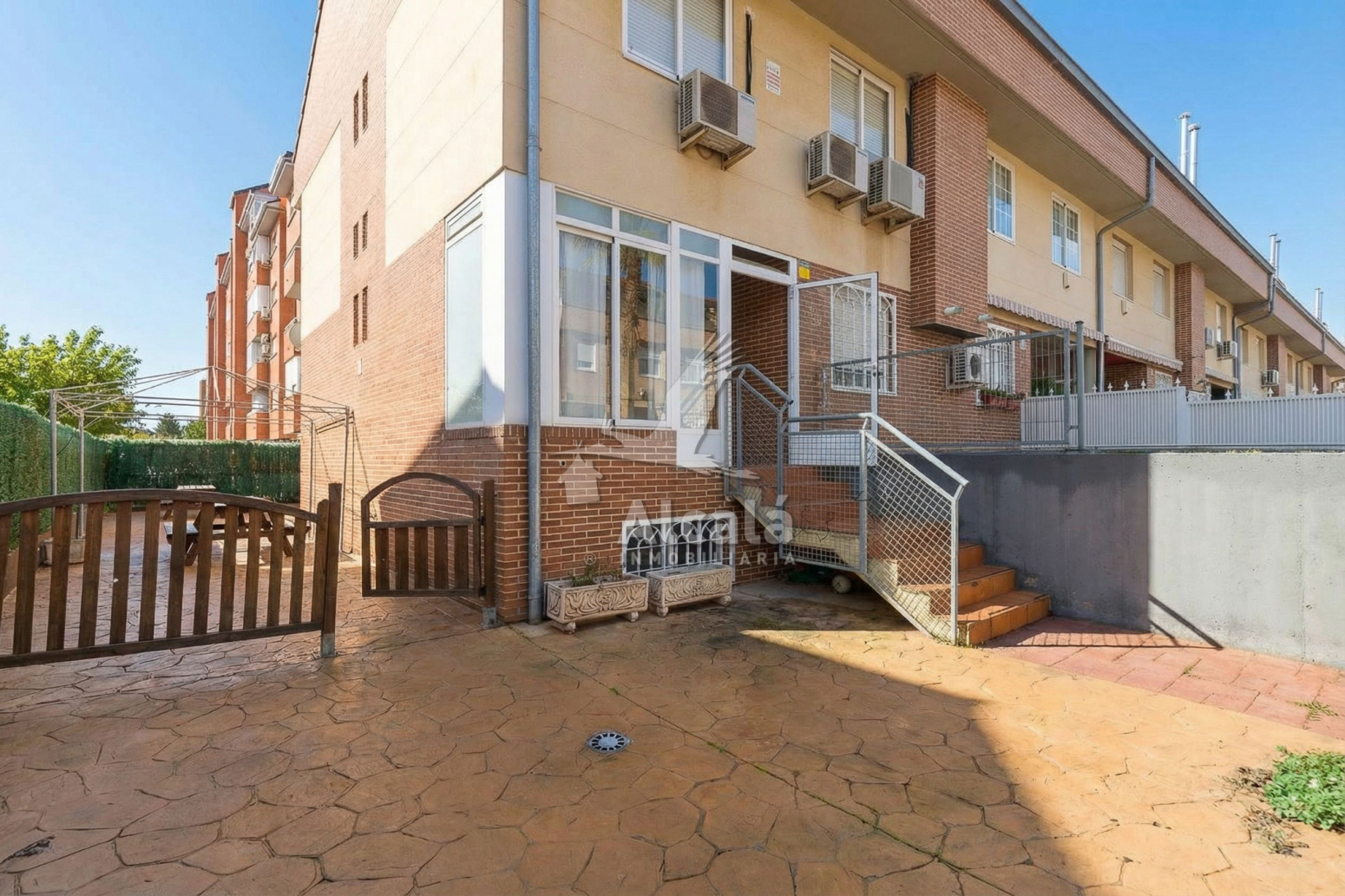 ALCALA INMOBILIARIA presenta CHALET ADOSADO DE ESQUINA  de 218 metros construidos. 3 dormitorios muy amplios. 3 baños ( uno de ellos en suite). Cocina independiente amueblada. Salón amplio con salida directa al jardín. Gran buhardilla. Sótano y Garaje. Espectacular patio.Aire acondicionado. Calefacción y agua GAS. En una de las zonas mas demandadas de Alcalá. Amplia y con grandes posibilidades de convertir  esta vivienda en tu hogar, acomodando los espacios a tus necesidades. El patio con posibilidad de piscina y de crear varios ambientes hace de esta vivienda UNICA en la zona.La vivienda cuenta con una coqueta terraza acristalada que nos introduce al interior de la vivienda donde encontramos un amplio recibidor que distribuye la vivienda :A la derecha encontramos una gran cocina amueblada, con vitrocerámica y horno, con una funcional distribución ,practica y bien aprovechada.A continuación encontramos un amplio salón-comedor con forma rectangular, lo que permite una sencilla y funcional distribución, con salida directa  al patio exterior. Posibilidad de hacerlo en dos alturas. Grandes ventanales que proporcionan una luz y calidez inmensa a esta estancia. AIRE ACONDICIONADO.A la izquierda, un baño completo con bañera, bidé, lavabo e inodoro. Ventana exterior.Y desde esta planta tenemos acceso directo al sótano donde encontramos un pequeño saloncito con chimenea y el garaje con espacio para almacenamiento.Subimos a la entrada y hacia la primera planta donde encontramos :Habitación principal amplia y con un gran armario empotrado de cuatro cuerpos. Doble ventana. Aire acondicionado. Baño en suite con bañera, bidé, lavabo con armario e inodoro.Habitación 2  amplia y con armario empotrado de tres cuerpos. Doble ventana.Habitación 3 muy amplia, sin armario, y con Aire acondicionado. Doble ventana.Baño completo con bañera, lavabo, bidé e inodoro que da servicio a las dos habitaciones.En la siguiente planta encontramos una gran buhardilla con cerramiento, con dos velux que proporcionan un espacio con mucha luz y donde podrás  tener tu zona de trabajo, ocio, habitación extra… AIRE ACONDICIONADO Y CALEFACCION. Posibilidad de hacer un baño.El patio muy amplio por su condición de ADOSADO EN ESQUINA te permite la posibilidad de un cenador, piscina, zona de juegos…NO DEJES DE VISITARLO. RESOLVEMOS TODAS TUS DUDAS…AGENDA TU VISITA. ESTAREMOS ENCANTADOS DE ATENDERLE.Todos los servicios cerca. Farmacias, supermercados, gimnasios, parques, colegios, guarderías, Bancos. Centro comercial El corte Inglés a escasos minutos.Líneas de autobuses y ESTACION RENFE  a tan sólo 5 minutos.Rápida Salida A-2 dirección Madrid y Guadalajara.No cobramos comisión al comprador.Vivienda con alta demanda. Consulta disponibilidad actualizada en nuestra web ALCALAINMOBILIARIANos encargamos de toda la gestión de la compra.Y además ponemos a tu disposición nuestro departamento de hipotecas totalmente gratuito para buscarte las mejores condiciones del mercado.¿Quieres saber cuánto se te quedaría la letra al mes?¿Quieres saber qué impuestos conlleva una compra-venta?Llámanos sin compromiso y programaremos una visita.Los metros de la vivienda están contrastados según catastro/registro.Los muebles que aparecen en la vivienda no son vinculantes y pueden No estar incluidos.Este anuncio no es vinculante y puede contener errores. Se muestra a título informativo y no es contractual. En los precios de venta no están incluidos impuestos legales ni gastos de escrituración.
