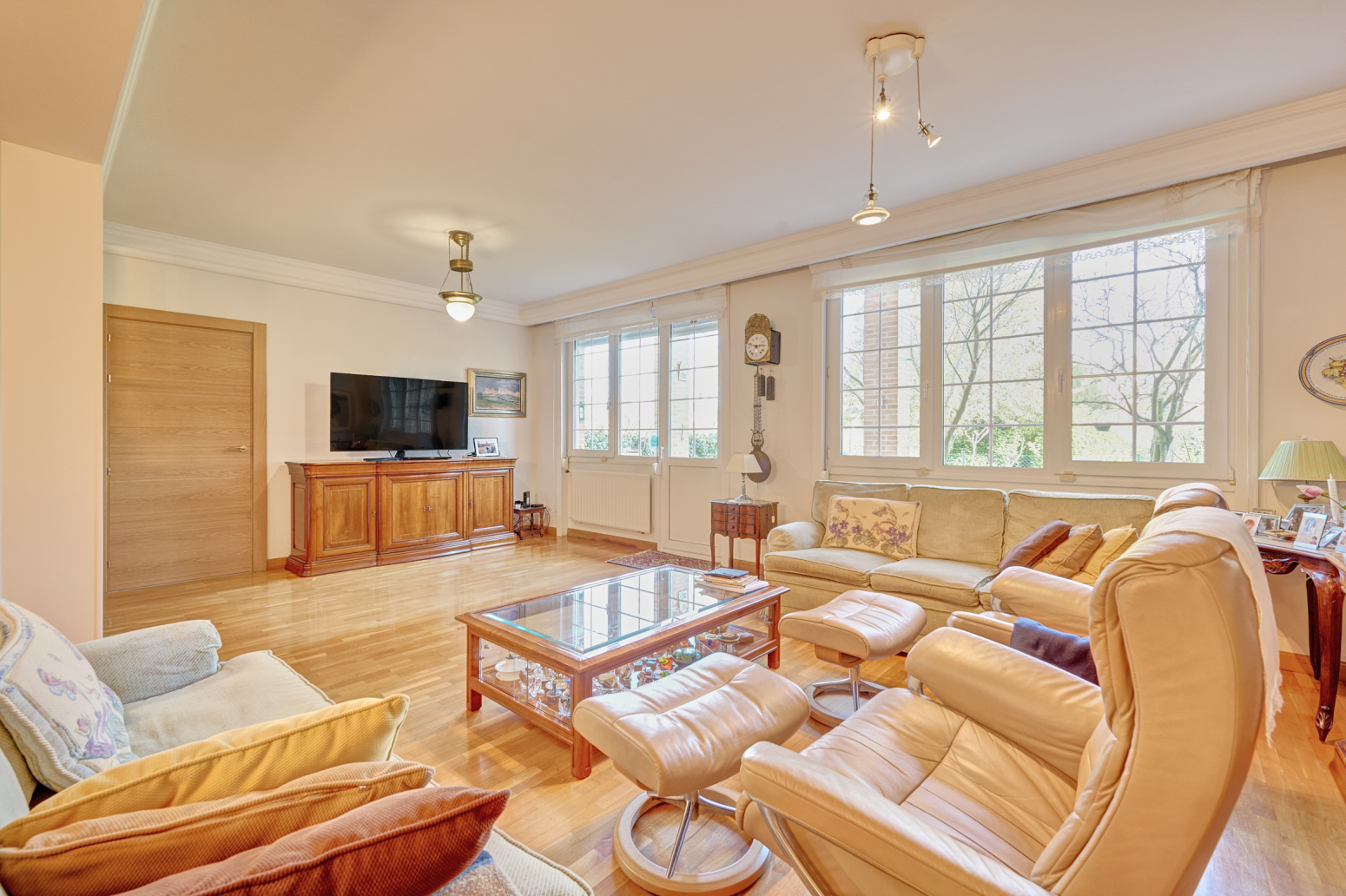 Subiendo a la primera planta, destaca la gran cristalera lateral, con persianas eléctricas, que da acceso a la zona de descanso: cuatro habitaciones con armarios empotrados todas y un baño conforman esta zona. la habitación principal cuenta con baño ensuite y vestidor. Las habitaciones destacan por su amplitud y luminosidad.