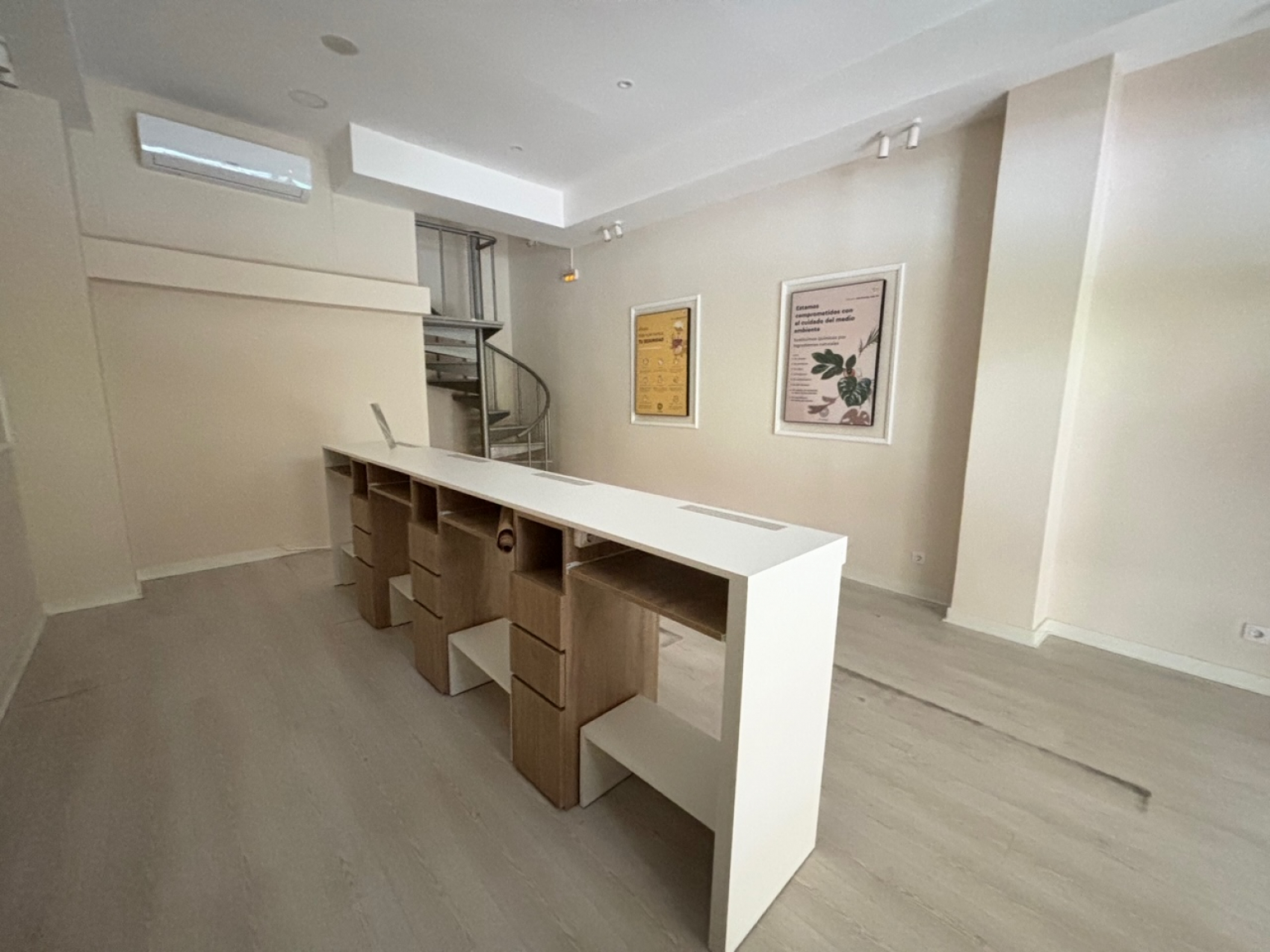 La iluminación natural es otro de los puntos fuertes de este local. Los grandes ventanales permiten que la luz del sol inunde cada rincón, creando un ambiente acogedor y agradable tanto para tus empleados como para tus clientes. Además, el aire acondicionado hará que los días calurosos de verano sean más llevaderos.