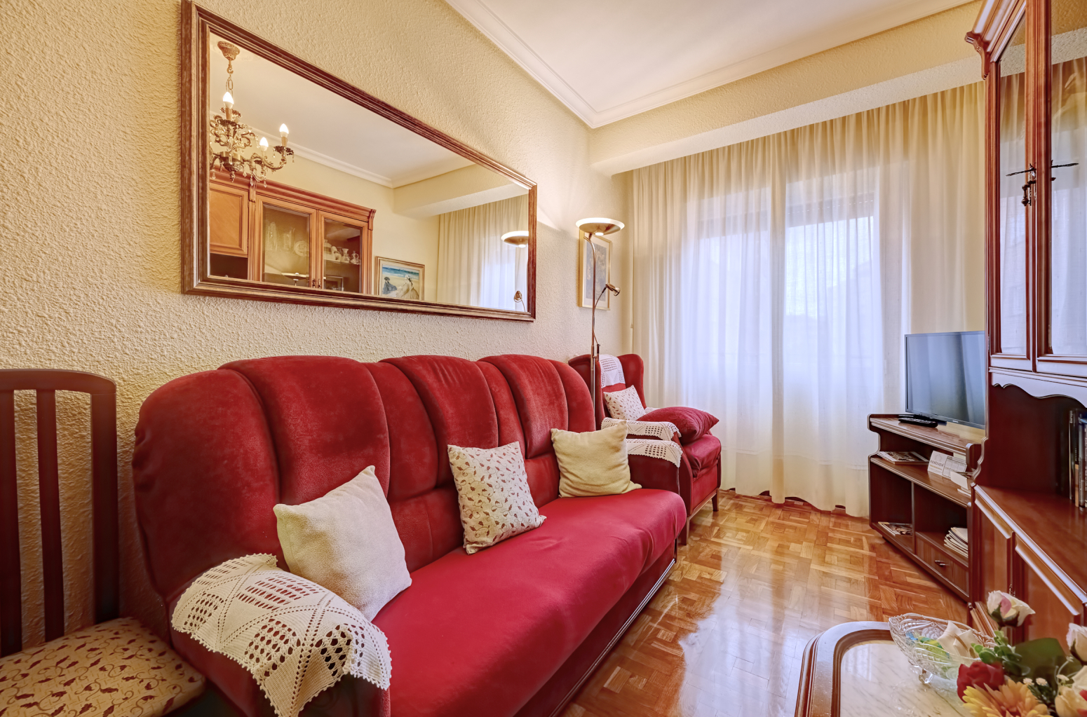 El piso se distribuye en cocina, salón , baño , tres dormitorios y un balcón. al que accedes desde uno de los dormitorios. Con las ventanas cambiadas y en muy buen estado de conservación , cuando entres te sorprenderá comprobar la luz que tiene y lo alegre que es.