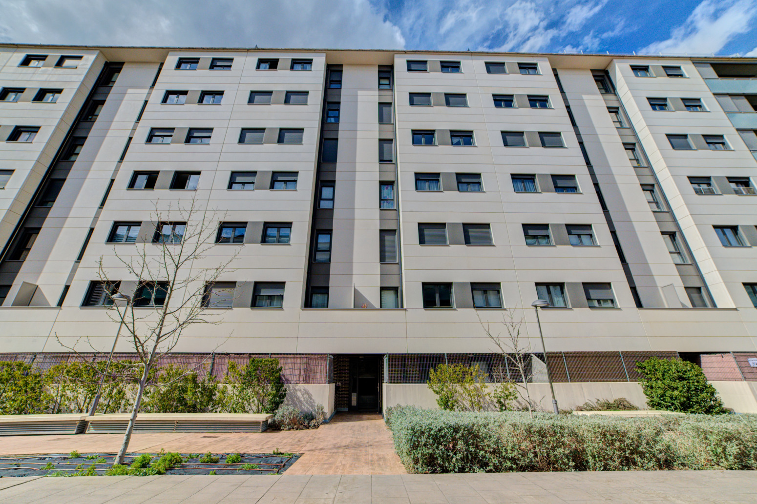 El edificio da a una zona peatonal muy bien cuidada, donde poder estar con los niños sin peligro alguno.
