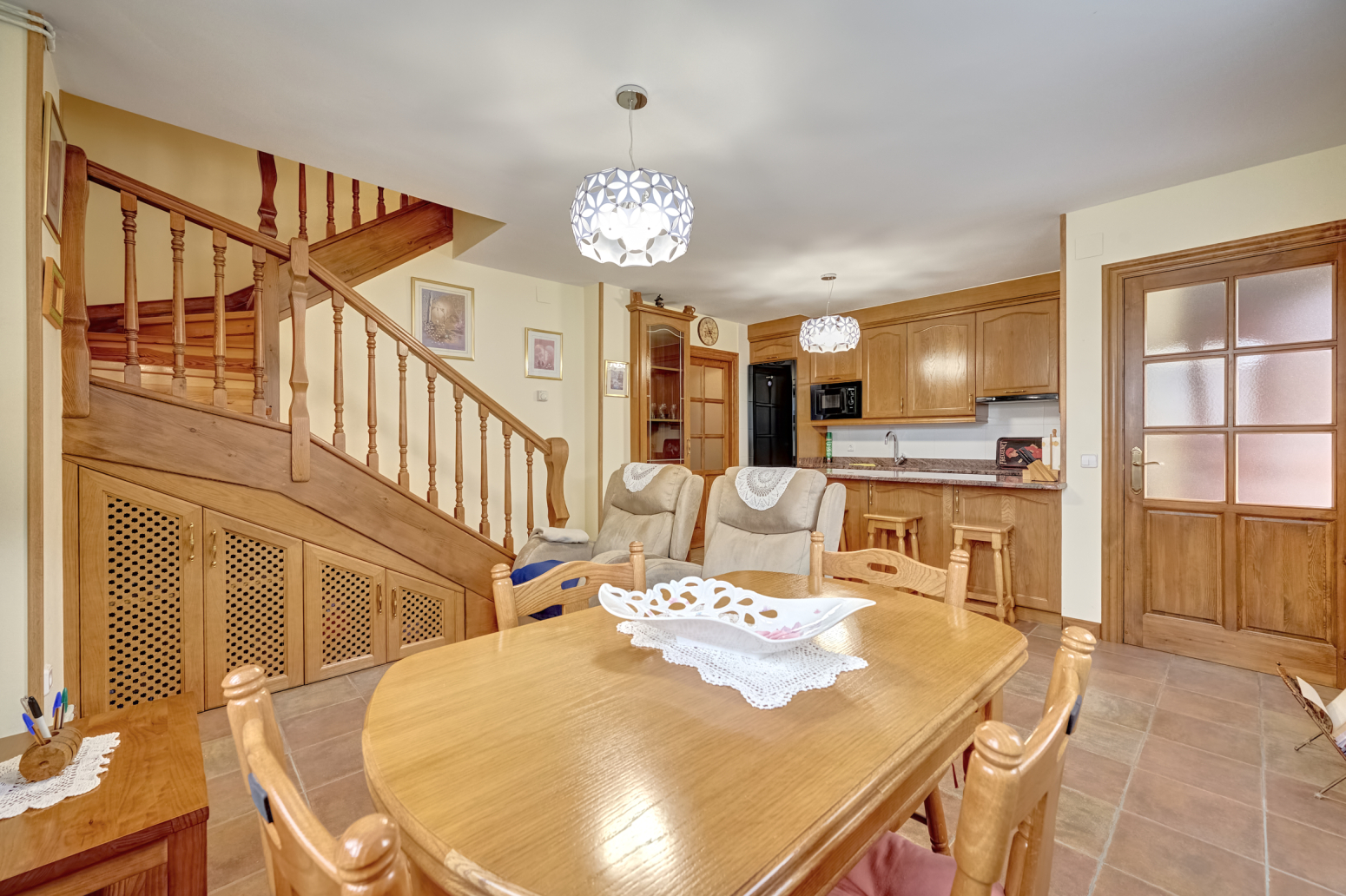 Dos plantas bien aprovechadas: en la baja, salón amplio y luminoso con cocina americana para que no te pierdas las conversaciones mientras cocinas, un dormitorio, baño, despensa y acceso directo a una terraza privativa donde el café por las mañanas sabe a gloria.