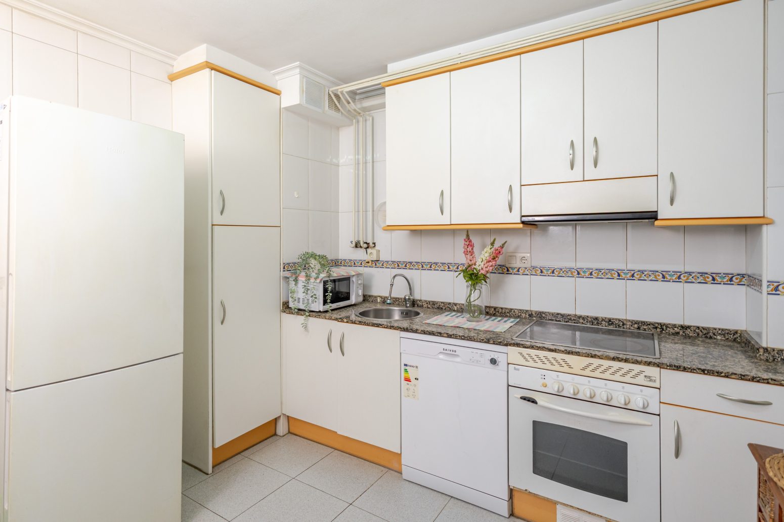 La cocina, totalmente equipada, está diseñada para ser un lugar práctico y acogedor. Desde la misma hay acceso a una terraza cerrada y cubierta, perfecta para un almacenamiento extra.
