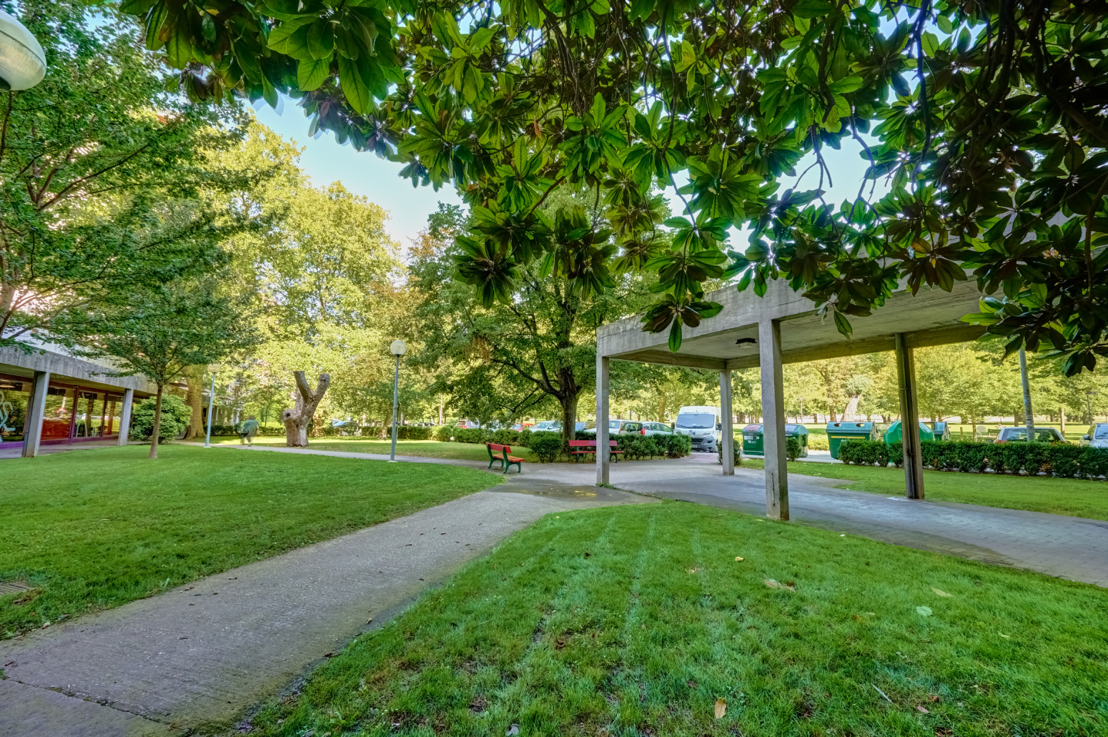El corazón de la vivienda es su amplio salón, un espacio diáfano que conecta directamente con una cocina grande y equipada. Esta cocina, además de ser funcional y espaciosa, se abre a una encantadora terraza cubierta, un rincón perfecto para relajarte mientras disfrutas de las vistas verdes que ofrece la ciudad. Imagina tomar tu café matutino mientras contemplas el verdor del parque desde la comodidad de tu hogar.