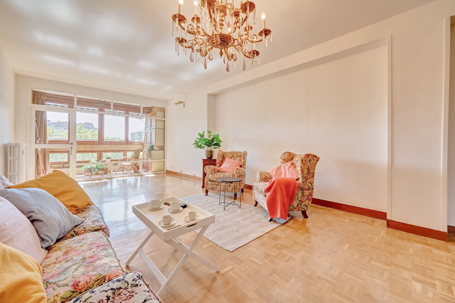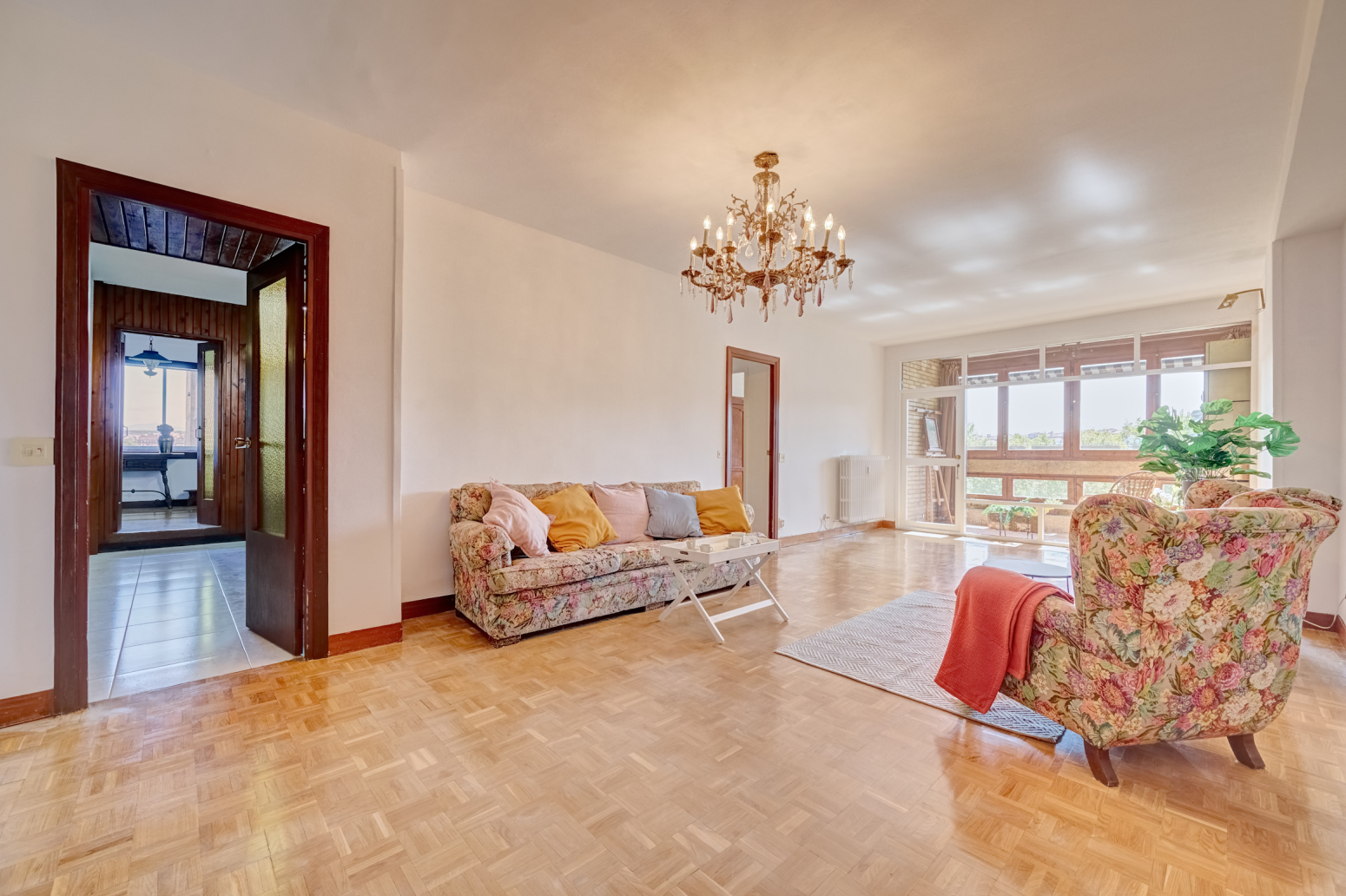 El salón también te brinda la posibilidad de acceder a un balcón cubierto, un espacio íntimo y sereno donde podrás disfrutar de momentos de relax o lectura mientras contemplas las maravillosas vistas de la ciudad. Además, la vivienda cuenta con un portal sin barreras arquitectónicas, equipado con dos ascensores y un montacargas, lo que garantiza una accesibilidad total y la máxima comodidad para ti y tus invitados.