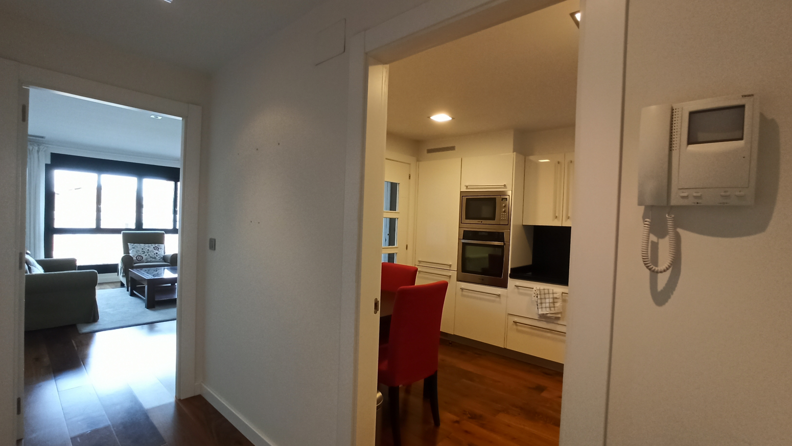 Edificio muy bien aislado con fachada ventilada de piedra, ventanas de aluminio, persianas eléctricas, paredes y techos con aislamiento termoacústico, parqué de nogal, calefacción central con contador individual y aire acondicionado. Los baños disponen de sanitarios suspendidos y ducha de lluvia. También cabe destacar la tranquilidad de la comunidad como característica de esta agradable vivienda.