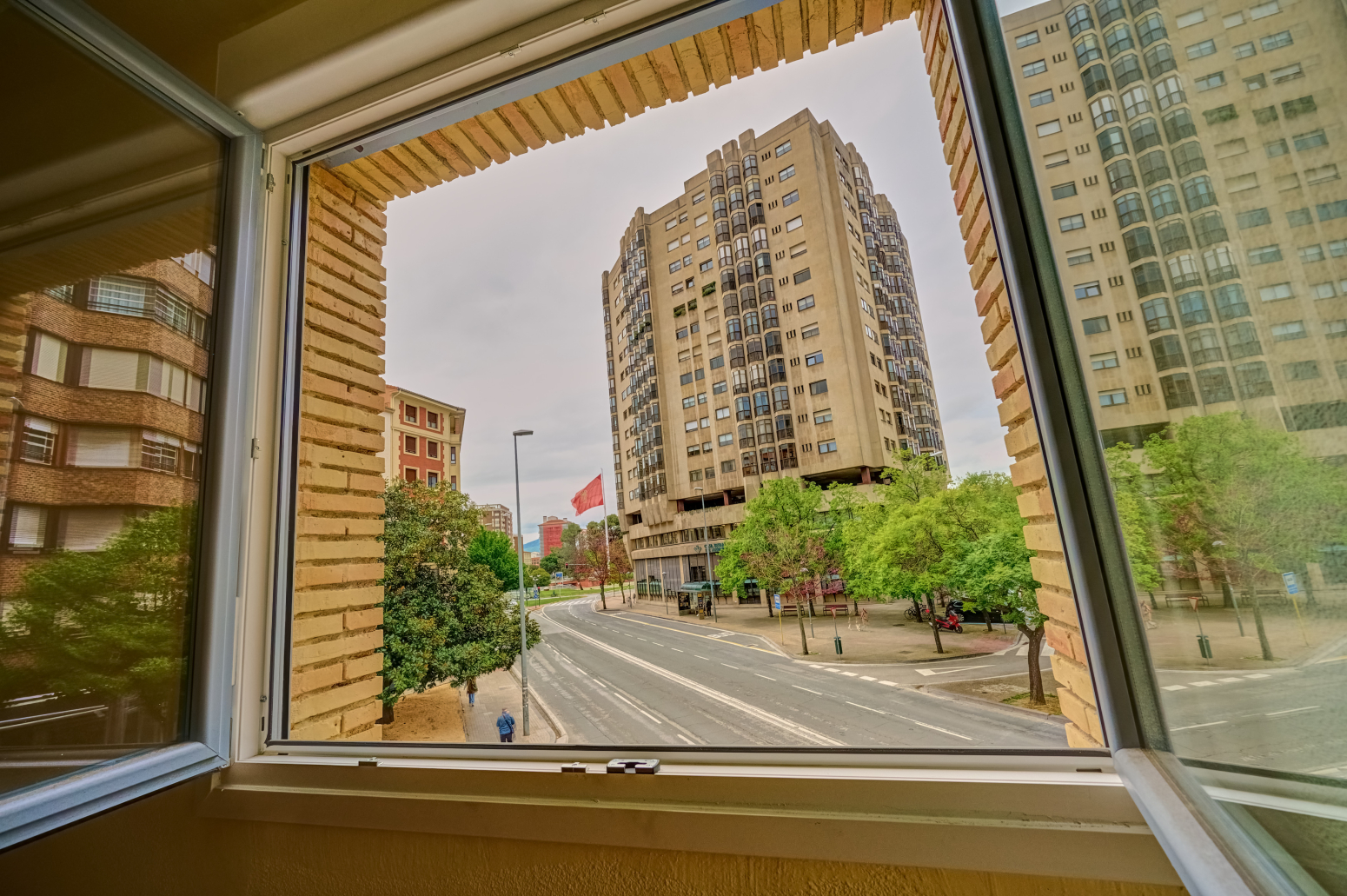 Es una amplia vivienda de 233 metros cuadrados construídos, muy luminosa, en chaflán y con vistas despejadas para disfrutar del lujo de vivir en el centro de Pamplona.