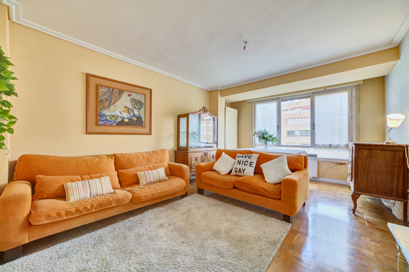 La vivienda se distribuye en salón, cocina y un dormitorio que dan a la amplia Avda de Pío XII  y 3  dormitorios más a patio que dada su altura son muy luminosos. Su superficie te va a permitir hacer una preciosa reforma totalmente personalizada y  adaptada a tu familia y  a tus necesidades. Tiene una terraza muy agradable para poder poner una mesita y tus plantas preferidas.